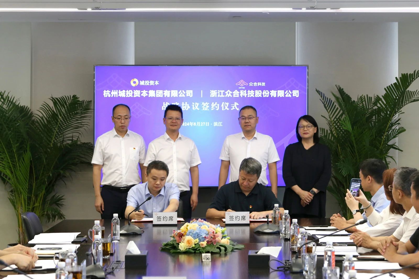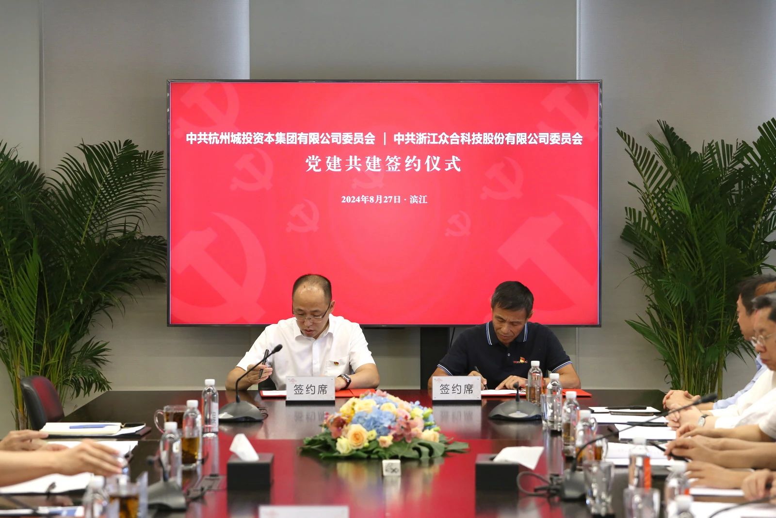 8月27日下午,眾合科技與杭州城投資本集團有限公司(以下簡稱“城投資本集團”)黨建共建協(xié)議與戰(zhàn)略合作簽約儀式在雙城國際總部順利舉行。