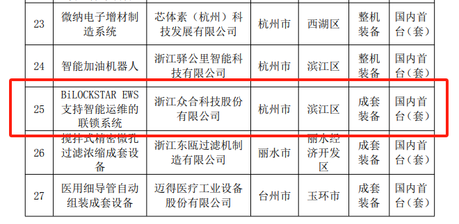 近日,由浙江省經(jīng)濟和信息化廳、浙江省財政廳聯(lián)合開展的2024年度首臺(套)裝備認(rèn)定結(jié)果正式公示,眾合科技自主研發(fā)的“BiLOCKSTAR EWS支持智能運維的聯(lián)鎖系統(tǒng)”,獲評2024 年度浙江省裝備制造業(yè)重點領(lǐng)域國內(nèi)首臺(套)認(rèn)定。