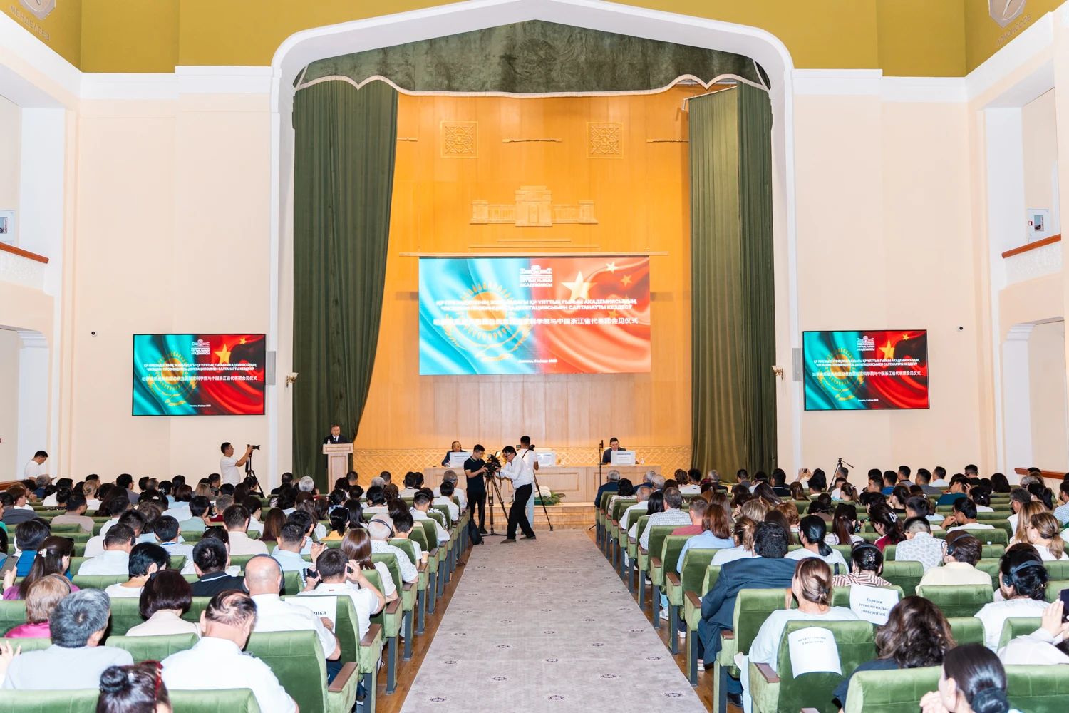 當(dāng)?shù)貢r(shí)間7月8日上午,哈薩克斯坦總統(tǒng)直屬國(guó)家科學(xué)院與浙江省代表團(tuán)高層會(huì)晤在哈國(guó)科學(xué)院舉行,雙方就深化中哈科技合作、推動(dòng)“一帶一路”倡議創(chuàng)新發(fā)展進(jìn)行了深入交流。哈薩克斯坦總統(tǒng)直屬國(guó)家科學(xué)院院長(zhǎng)阿克爾別克·庫里什巴耶夫,中共浙江省委常委、政法委書記王成國(guó),中共浙江省委政法委副書記姚海濤,浙江工業(yè)大學(xué)地理信息學(xué)院學(xué)術(shù)院長(zhǎng)陳曦等中哈雙方政產(chǎn)學(xué)研界代表出席會(huì)議。眾合科技董事長(zhǎng)潘麗春、副總裁王振凱、副總裁羅建強(qiáng)等作為聯(lián)合實(shí)驗(yàn)室的建設(shè)單位代表參加會(huì)議。