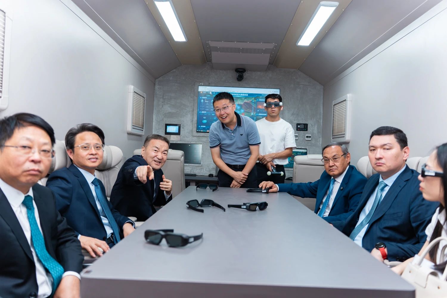 (配圖為浙江省代表團(tuán)在西格瑪應(yīng)急指揮車中參觀,眾合研究院產(chǎn)業(yè)研究部總經(jīng)理王廈講解)