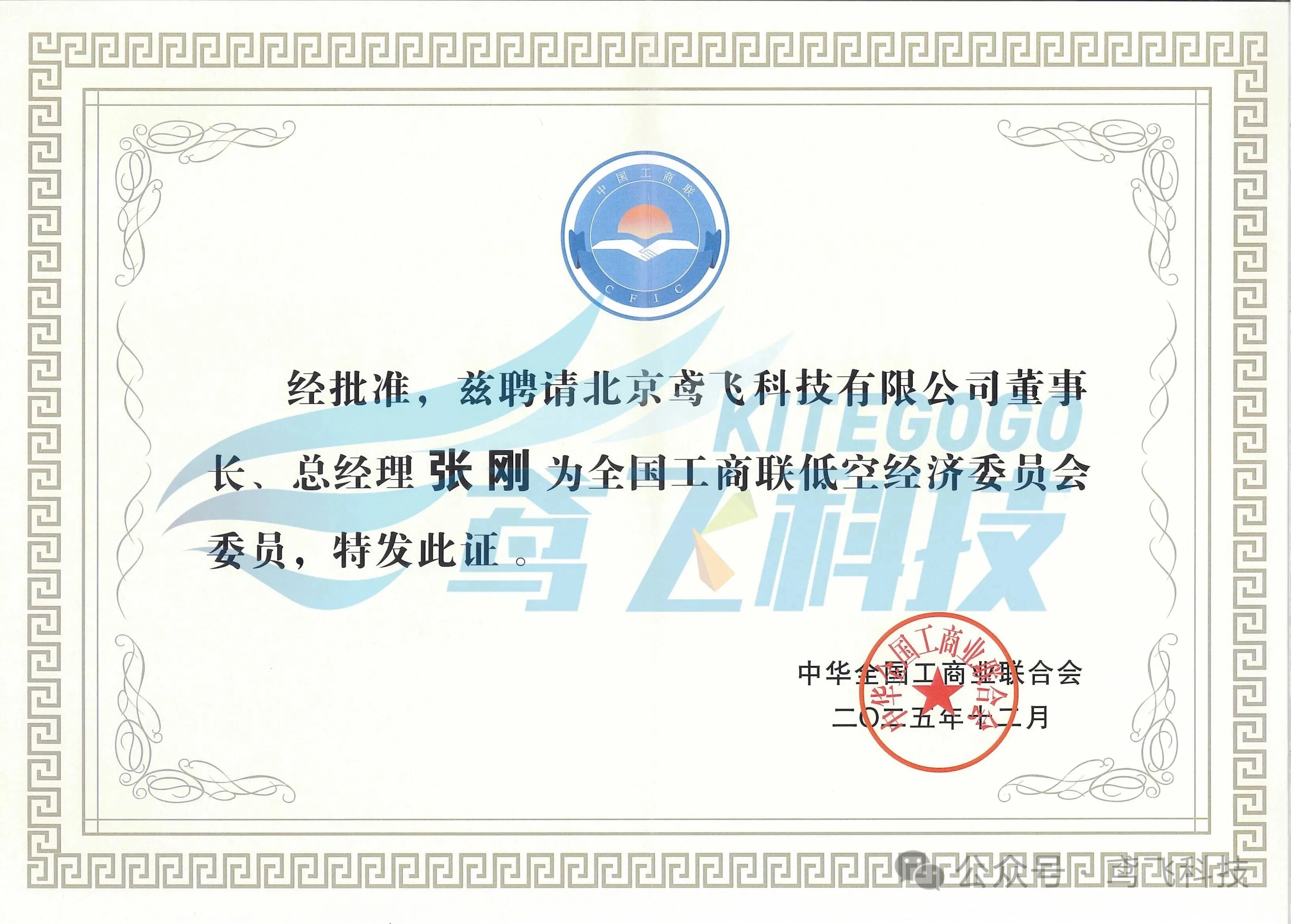 會(huì)上宣讀了《關(guān)于成立全國(guó)工商聯(lián)低空經(jīng)濟(jì)委員會(huì)的決定》,眾合科技參股企業(yè)——北京鳶飛科技有限公司董事長(zhǎng)張剛被聘請(qǐng)為全國(guó)工商聯(lián)低空經(jīng)濟(jì)委員會(huì)委員,并頒發(fā)了委員證書(shū)。